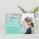 Faire-part de mariage élégant et chic avec paillettes blanches sur fond vert sarcelle, carte de faire-part de mariage. Ce design classique et sophistiqué est parfait pour le couple trendy et élégant. Personnalisez avec votre propre message au recto ainsi qu'un monogramme personnalisé au verso. Conception d'impression photo personnalisable.