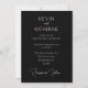 Ceci est une carte de faire-part de mariage classique noire et rose poussiéreux. Ce design présente une police de caractères rose poussiéreux sur fond noir. Parfait pour les couples qui prévoient un mariage minimaliste simple !