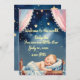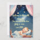 Accueillez votre bébé garçon avec ce faire-part paisible et rêveur ! Représentant un nouveau-né endormi sous une douce nuit étoilée, encadré de rideaux délicats et d'un berceau douillet. Parfait pour les fêtes prénatales, les annonces de naissance ou les fêtes de bienvenue. Entièrement personnalisable avec les détails de votre bébé.