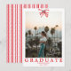 Faire-part de remise de diplôme photo Coquette Nœud Rouge et Blanc avec un dos rayé de dentelle rouge et blanche.