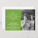 Annoncez votre mariage sur le thème des fêtes ou de l'hiver avec cette annonce de sauvegarde de photo de flocon de neige doux. Caractérisé par un flocon de neige blanc délicat et élégant et une fine bande sur un fond vert uni, ce design amusant est facile à personnaliser. Ajoutez simplement votre propre photo et les détails de votre mariage dans les champs de texte prévus ou cliquez sur "Personnaliser" pour trouver plus d'options de personnalisation.