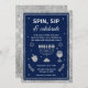 Levez votre verre et faites tourner le dreidel avec cette invitation de Hanukkah élégante "Spin, Sip & Celebrate". Avec son fond bleu marine profond et ses accents de faux strass argentés scintillants, ce design allie tradition et style moderne. Un chandelier étincelant ancre la composition, entouré d'icônes festives comprenant un dreidel, un verre à vin, des étoiles de David et des fioritures de célébration. Parfait pour les rassemblements d'adultes ou les événements communautaires animés, cette invitation donne le ton pour une soirée de bonne humeur, de jeux et de compagnie lumineuse.