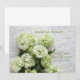 photo d'hortensias blancs et vert pâle sur un fond d'écriture manuscrite de style ancien