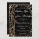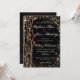 Faire-part de mariage de forêt de conte de fées sombres avec deux bourgeons roses dans une vigne d'épines, bruns foncés avec des polices d'or avec deux roses romantiques contrastées.