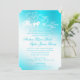 Faire-part de mariage de conte de fées enchanteur avec une carriole à cheval antique et coeurs avec monogramme dans une jolie couleur bleu aqua.