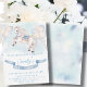 Invitation à l'anniversaire sur le thème du cheval avec illustration d'un charmant cheval magique blanc et des étoiles de conte de fées Watercolor or avec ballons de couleurs pastel et ruban bleu pour la célébration!