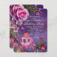 Fête d'anniversaire de la princesse Fairytale avec de jolies roses roses sur un arrière - plan mauve pétillant avec un bel entraîneur royal princesse rose. Vous pouvez facilement customiser cette belle invitation de fête d'anniversaire de princesse rose et violet pour votre événement en ajoutant simplement vos détails dans le style et la couleur de police, et le libellé de votre choix. Il s'agit d'un design imprimé sans vrais bijoux, rubans, parties scintillant, etc.