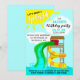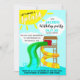 Faites des éclaboussures avec notre invitation vibrante Faisons des éclaboussures Fête d'anniversaire au parc aquatique ! Parfaite pour une célébration d'anniversaire estivale, ce design présente deux toboggans colorés sur un ciel ensoleillé lumineux, assurant que les détails de votre fête soient intégrés de manière transparente dans le design amusant et festif. Invitez vos invités à une journée d'excitation et de rires avec cette invitation accrocheuse et ludique.