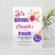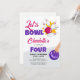 Préparez-vous à frapper pour s'amuser avec cette adorable invitation d'anniversaire sur le thème du bowling ! Parfait pour l'anniversaire d'une petite fille, ce design présente une jolie quille de bowling et une boule de bowling joyeuse. Personnalisez avec les détails de votre fête pour une invitation unique qui laissera une impression durable.