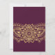 Cette carte d'invitation Faisons la fête avec des motifs cachemire indiens dorés est parfaite pour un événement élégant. Le design mehndi présente un magnifique mandala de henné floral et un motif cachemire sur fond bordeaux. Cette invitation peut être personnalisée pour une soirée de fiançailles, une soirée d'enterrement de vie de jeune fille ou tout autre événement ou fête.