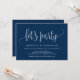 Cette carte d'invitation de design de calligraphie moderne sur le thème de la fête (faisons la fête) est parfaite pour votre célébration de fuite de mariage / annonce de mariage. Ajoutez vos détails dans une police / écriture assortie de couleur bleu marine.