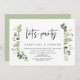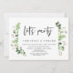 Moderne écriture noire, thème estival de verdure de jardin, carte d'invitation de mariage en fuite (Faisons la fête). C'est parfait pour votre réception de mariage en fuite / fête de célébration post-mariage. Ajoutez vos détails dans une police / lettrage noir assorti.