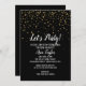 Invitation Faisons la fête Confettis dorés sur fond noir de r