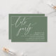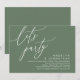 Marquez le début de votre éternité avec élégance en utilisant notre romantique rustique contemporain thème vert elopement de mariage toujours heureux après le déjeuner, brunch, réception dîner fête carte d'invitation, "Let's Party". Parfait pour les couples qui souhaitent profiter de leur joyeux événement, cette invitation exhale le raffinement avec un soupçon de jeu, préparant le terrain pour un événement mémorable. Décoré avec un thème design contemporain intemporel, il ajoute une touche de charme raffiné à vos festivités. Conçu par TeeshaDerrick, cette invitation promet de capturer magnifiquement votre histoire d'amour.