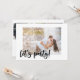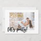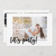 Invitation photo moderne - conçu pour un fiançailles mais modifiable pour convenir à toute occasion. Le recto de la carte se lit simplement "Faisons la fête !" dans le script en brosse noire, qui se trouve comme une superposition sur votre photo principale. Le dos de la carte contient vos détails de célébration personnalisés avec 3 autres photos, qui sont affichées en format carré / instagram. Le design est minimaliste, noir et blanc.