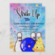 Invitation de fête pour garçons "Faisons monter le plaisir", thème couleur bleue. Cette invitation est posée sur un fond saisissant de teinture tie-dye (bleu). Elle utilise un thème rétro éclatant avec une palette de couleurs tendance. Les personnages de dessin animé kawaii de bowling accentuent le plaisir !