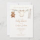 Cette invitation de baby shower mignonne présente des vêtements de bébé sur un fil à linge et peut être personnalisée avec vos informations dans une typographie élégante. Conçu par Thisisnotme©