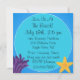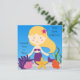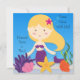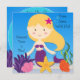Vous pouvez facilement customiser nos invitations blondes d'anniversaire de sirène avant la commande avec les détails du nom et de la partie de votre enfant ! Une sirène d'une chevelure blonde mignonne, une étoile de mer, une algue, et une eau bleue lumineuse font à ce joli invitation de thème de sirène un coup !