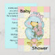 Invitation douce de baby shower faite dans de belles couleurs douces et graphiques adorables d'un petit poussin bleu tenant les roses roses. L'ensemble sur un patchwork en pastel regardant l'arrière - plan cette invitation mignonne est parfait pour n'importe quel baby shower. Personnalisez le texte, sur l'avant et le dos de l'invitation d'adapter à vos besoins.