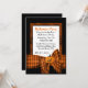 Invitation assez noire et orange de partie de Halloween. Graphiques d'un cadre autour d'un gisement blanc des textes et un ruban orange et noir de plaid et d'un arc noirs et oranges, au fond, avec un citrouille au milieu de l'arc. Personnalisez tout le texte pour votre coup de Halloween. Approprié aux parties d'adulte et d'enfants.