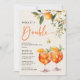 Elégant 'Faites-en une double invitation d'anniversaire conjointe. Le design comprend un arrière - plan crème douce décoré d'oranges et de fleurs d'oranges, deux boissons à cocktails apéros à l'aquarelle, un beau papillon jaune et un modèle de fête d'anniversaire moderne qui est facile à customiser avec vos propres détails de l'événement.