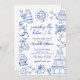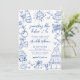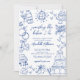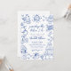 Quelque Chose De Bleu Avant Que Je Ne Fasse Une Invitation De Douche Nuptiale. Ce design élégant et ludique présente des polices et des illustrations bleues, parfaites pour célébrer la mariée à être avec un thème "quelque chose de bleu". En haut, "What Blue Before I Do" s'affiche dans un mélange d'élégants scripts et de polices serif classiques, donnant un ton élégant et mémorable. Le design présente des coeurs bleus dessinés à la main et des illustrations florales délicates, ajoutant une touche légère et charmante. Les détails de la douche nuptiale sont magnifiquement arrangés dans une combinaison de calligraphie script et de polices serif, mélangeant le raffinement avec un esprit moderne. Sur le dos, un simple motif de coeurs bleus garde le look cohésif et romantique. Cette invitation est entièrement personnalisable, vous permettant d'ajuster le texte, les polices et les éléments supplémentaires pour correspondre à votre vision unique. Disponible sous forme de carte imprimée ou de fichier numérique téléchargeable, c’est la façon idéale de donner le ton à une douche nuptiale chic et mémorable.