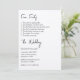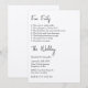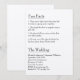 Cette faire-part de mariage de style moderne et minimaliste présente un design simple avec une police noire élégante, imprimée dans le style d'une liste. Une liste de faits amusants sur la mariée et le marié ou le couple est imprimée en haut,[ suivie par les informations mariages. C'est une façon simple et unique de divertir vos invités et de les laisser voir un côté personnel de vous.