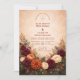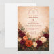 Inspired by rich autumn florals and romantic seasonal palettes, this wedding design features layered roses, dahlias, and soft foliage in warm rust, blush, and cream tones. The painterly floral border frames the layout beautifully, creating a refined yet inviting atmosphere that feels both classic and celebratory.