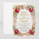 Celebrate the bride-to-be with this stunning, refined botanical invitation. Featuring vibrant watercolor pomegranates—symbols of fertility and abundance—entwined with delicate coral ribbons, this design is the perfect choice for an elegant autumn brunch or a chic garden gathering.