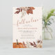 Modern floral botanical and pumpkin chic Fall in Love ivory bridal shower invitation with a trendy handwriting calligraphy script. +++++ Suitable for autumn fall garden backyard farmhouse bridal shower parties.