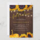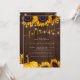 Sunflower jaune moderne et citrouille Fall in Love nuptiale invitation avec écriture chic jaune manuscrite script de calligraphie sur un arrière - plan en bois de grange brun avec cordes de lumières scintillantes. +++++ Convient pour l'été automne automne extérieur rustique jardin de campagne jardin ferme de douches nuptiales parties.