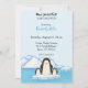 invitation avec image de famille pingouin sur fond bleu