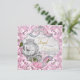 Ornate conte de fées princesse invitation à la fête d'anniversaire avec belle voiture royale blanche et joli roses rose et parties scintillant argent pétille arrière - plan avec de beaux tourbillons roses. Cette élégante invitation à la fête d'anniversaire de princesse livre rose est facilement customisée pour votre événement en ajoutant simplement vos détails dans le style et la couleur de police, et le libellé de votre choix. Il s'agit d'un design imprimé avec pas de vrais bijoux, rubans, parties scintillant, etc.