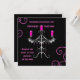 Mon dessin d'un élégant porte-bougie gothique en noir et gris avec ailes de chauve-souris, tourbillons, bougies et bijoux roses chauds sur le noir. Montré ici sur 5.25" x 5.25" invitations de mariage carrés à personnaliser. Vous pouvez aussi les remplacer par des fêtes d'Halloween.