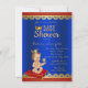 Baby shower de prince fantaisie avec adorable petit prince garçon sur un trône royal et coussin rouge sur un beau arrière - plan rouge, bleu et or. Cette invitation royale au baby shower prince est facilement customisée pour votre événement en ajoutant vos détails dans le style de police, la couleur et le libellé de votre choix.
