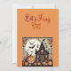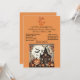 "Fang Out" - Une invitation hantée de la fête du costume d'Halloween pour les éffrayants se réunissent. L'illustration montre Jack O lanternes, chauves-souris dans le cadre d'une maison hantée éffrayante avec arrière - plan couleur brique. Le texte peut être facilement customisé avec votre choix de mots et de style.