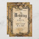 Medieval wedding invitation royal vintage with black frame ornate on with a gold ink pour effect (the gold is a digital effect, not real foil!) and chic modern calligraphy. Classy and elegant, moody and romantic wedding invitation.