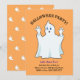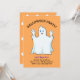 Belle invitation fantôme Ginger Halloween. Il y a un motif de fantôme sur fond orange au verso. Tous les textes et les nombres sont prêts à être personnalisés.