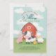 Célébrez le 2e anniversaire de votre petit avec cette invitation à l’élevage animal de la ferme, avec une grange rouge à l’aquarelle, un cochon, une vache, un mouton et un poussin. Amusant et coloré, avec "Oink, Baa, Moo - [Nom] tourne deux !" sur le devant et le en vichy rouge classique sur le dos. Parfait pour une fête d’anniversaire à la ferme pour les tout-petits!