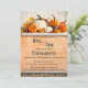 Dîner Rustique Thanksgiving invitation avec citrouilles dans une ambiance de ferme élégante. Idéal pour une fête de style champêtre et une atmosphère tranquille.