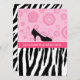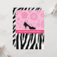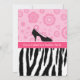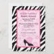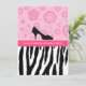 Invitations tendance à la fête de la mode avec un motif zèbre noir et blanc sur le fond et des fleurs rétro rose girly sur le dessus avec un mignon pois haute chaussure talon. Personnalisez pour convenir à toute occasion.