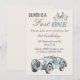 Fast One 1st Birthday Blue Race Car Boy Invitation with a vintage blue race car and checkered flag details. Perfect for a boy’s first birthday, this design is a fun choice for a race car theme with a classic sporty look.