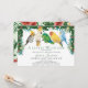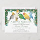 Célébrez l'arrivée imminente de votre petit fauve avec cette invitation de fête de naissance au thème tropical fantaisiste. Le design présente un groupe de perroquets exotiques adorables et une verdure tropicale à l'aquarelle avec des fleurs