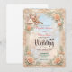 Transportez vos invités dans une ère romantique avec ce design éthéré mettant en vedette un chérubin vintage et des pastels doux. Parfait pour une célébration printanière élégante. Ce design présente une composition sophistiquée rappelant l'art du XVIIIe siècle. Un cadre orné imprimé imitant l'apparence du marbre beige et des moulures en bas-relief architecturales borde la mise en page. À l'intérieur du cadre, un fond de ciel bleu poussiéreux établit une tonalité céleste, surmonté d'une illustration vintage d'un ange chérubin jouant du violon. La scène est rehaussée de roses abricot doux, de marguerites blanches et de feuillage vert sauge. Le texte est présenté dans une écriture formelle et élégante. Il s'agit d'une image imprimée plate avec un effet de texture de pierre fausse, et non d