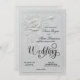 About the Design: This design simulates the tactile look of traditional blind embossing through a high-quality digital print (faux effect). The background is a clean, monochromatic white, featuring a sophisticated, sculpted 3D rose motif in soft shades of light gray and stone to create the illusion of depth, shadow, and raised relief. An intricate, faux beaded rectangular border frames the layout. The text is centered, utilizing a formal black ornamental calligraphy script for the couple's names, paired with a traditional serif font for the ceremony details. The overall aesthetic is crisp and architectural, mimicking the appearance of carved plaster or heavy cardstock relief.