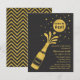 Elle se prépare à faire de la pop ! Alors venez célébrer avant son grand jour ! Cette invitation au baby shower design, élégante, tendance et moderne, à la mode et à la mode, a un champagne qui sort du liège avec des bulles et des étoiles qui sortent de la bouteille ! Le design est traité avec du papier doré comme une texture et une texture de burlap noir. Au verso, un motif de zigzag en chevron doré et noir. Personnalisez avec les détails de votre fête baby shower.