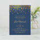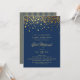 Invitation Faux Gold Foil Confetti Bat mitzvah bleu marine