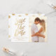 Annoncez votre mariage à votre famille et à vos amis avec cette annonce moderne et élégante enregistrer la date. Le personnalisable enregistrer la date annonce comporte faux feuille d'or typographie audacieuse et motif de points festifs. Personnalisez le dos de la carte en ajoutant votre photo ou d'autres motifs.