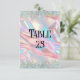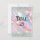 Une carte de numéro de table mariage avec un élégant papier d'aluminium irisé et un arrière - plan parties scintillant.