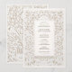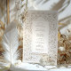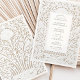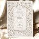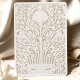 Cette faire-part de mariage sophistiquée présente une bordure florale d'inspiration laser, imitant la texture et le raffinement du papier gaufré. L'élégante palette de couleurs ivoire et taupe crée une esthétique intemporelle et luxueuse, parfaite pour les mariages en cravate noire ou formelle. Des vignes délicates, des fleurs tourbillonnantes et des fleurs en fleurs forment un cadre orné autour d'une disposition de texte serif classique, permettant à vos détails mariages de prendre le devant de la scène. Le dos poursuit le motif exquis avec un design botanique symétrique à grande échelle, faisant écho aux reliefs architecturaux européens et à la décoration de la grande salle de bal. Imprimée avec une grande précision pour simuler profondeur et dimension, cette invitation donne l'illusion de la sculpture sur papier, idéale pour les couples à la recherche d'une élégance sobre et de détails royaux sans le coût d'une véritable découpe laser.